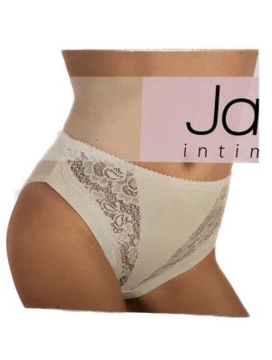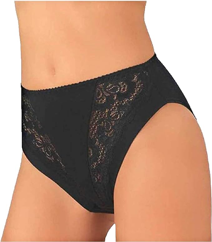 Jadea 788 slip da donna sgambato ed a vita alta in cotone modal e pizzo floreale presentato con due ampie balze trasparenti nella parte frontale.