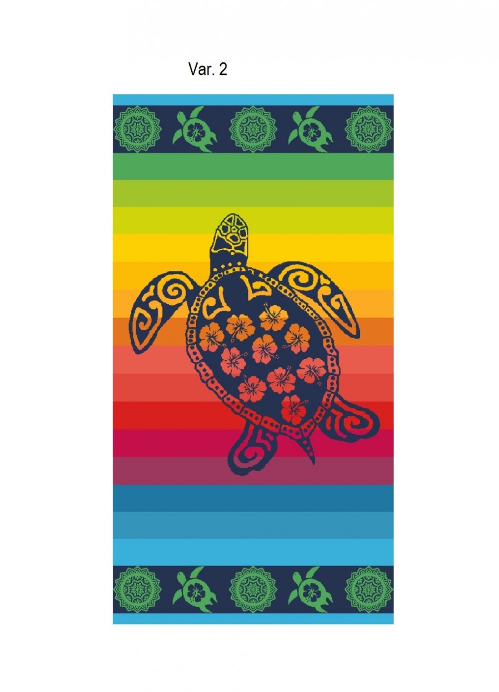 Telo mare realizzato con lavorazione jacquard a fantasia. Dimensioni 90×170 cm, peso 410 gr/mq