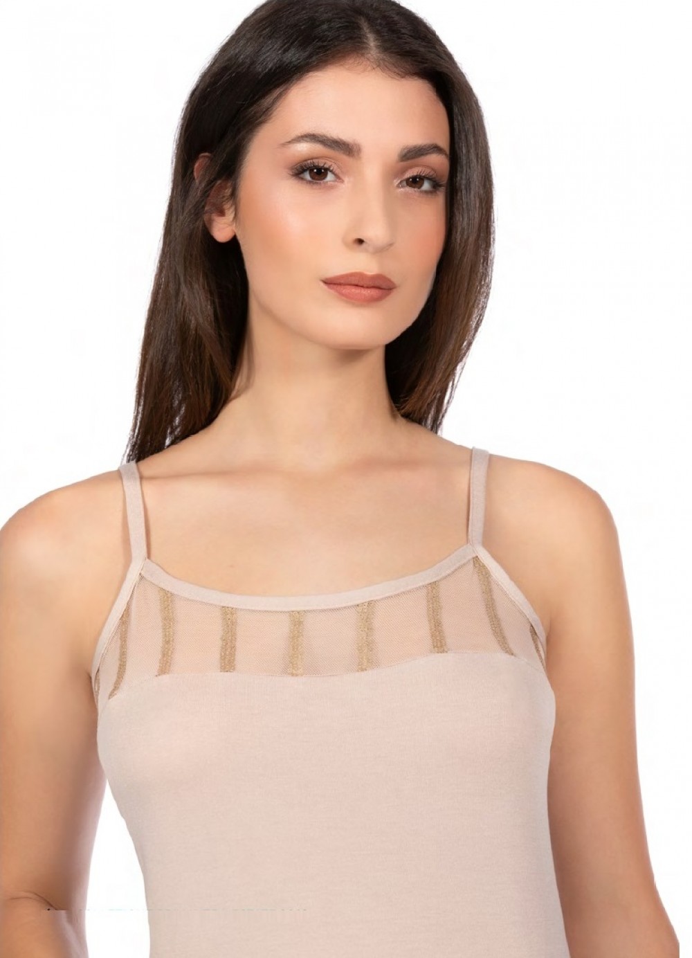 Canotta spalle strette realizzata in viscosa elasticizzata e tulle