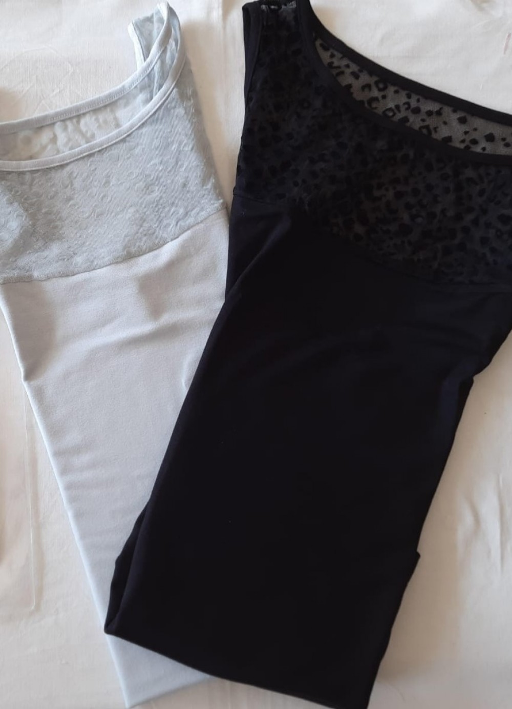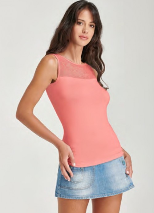 Canotta a spalla larga, realizzato in viscosa e tulleComposizione 95% viscosa 5% elastan