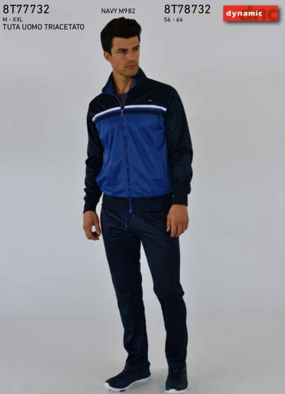 Tuta classica in triacetato, manica con polsino, pantalone dritto con coulisse