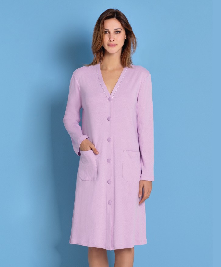 Vestaglia manica lunga aperta con bottoni e tasche davanti
