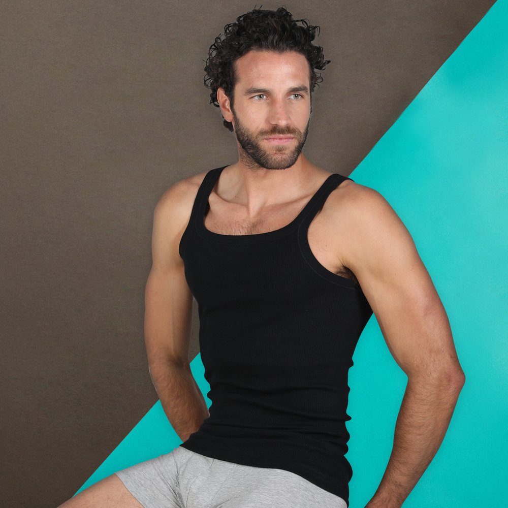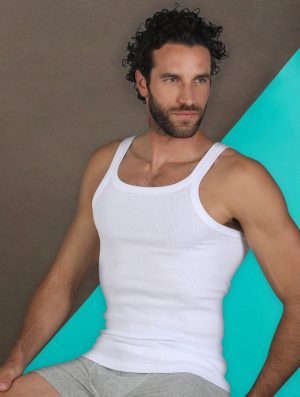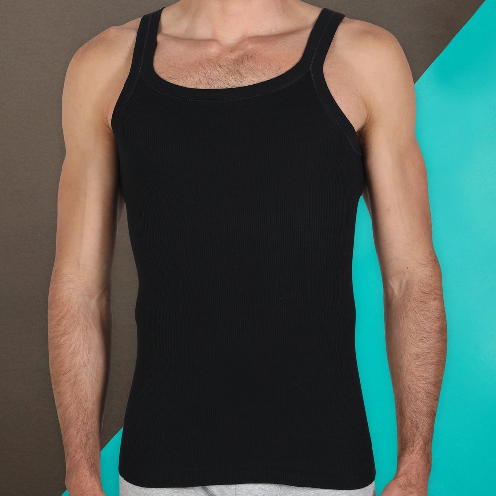 Canottiera a spalla stretta in cotone soffice e leggero con buone capacità di assorbimento, indicato per essere indossato a contatto con la pelle.